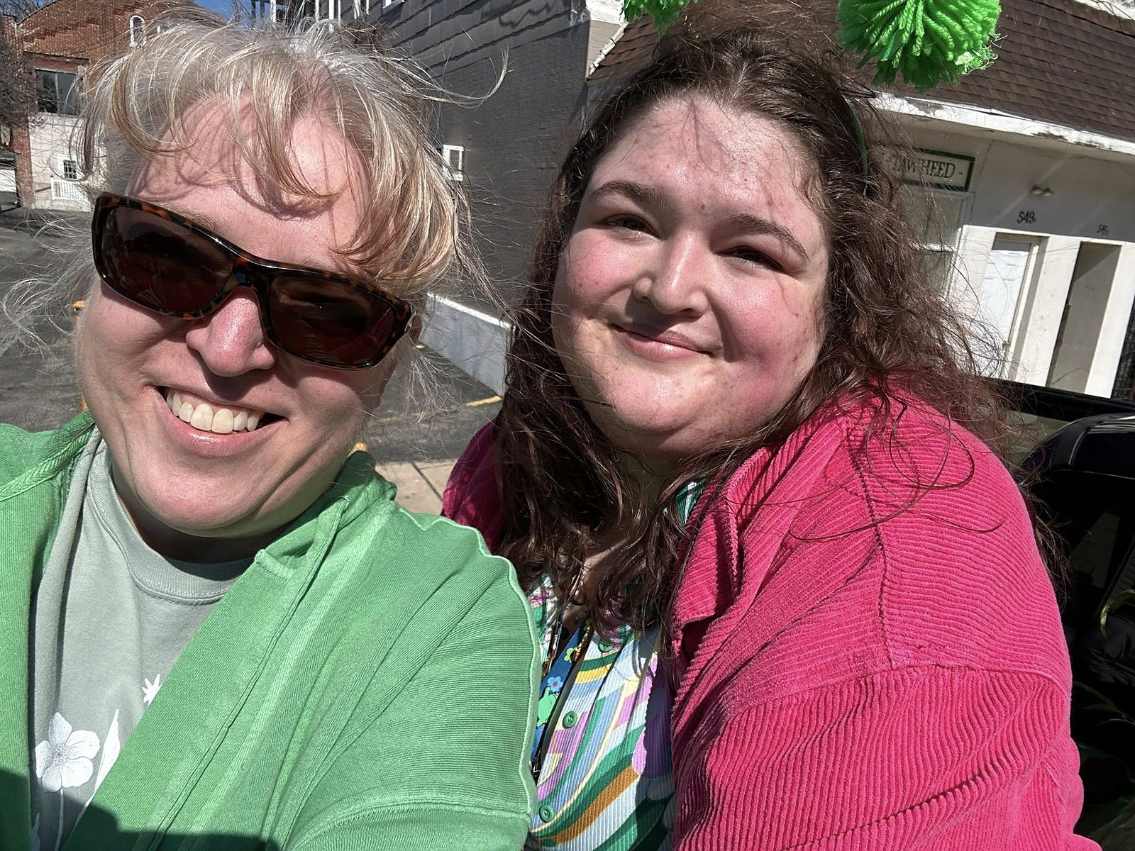 Mom and I on the Y's St. Patrick's Day parade float!